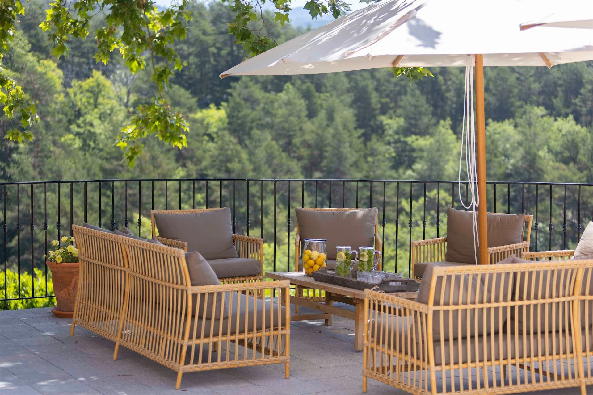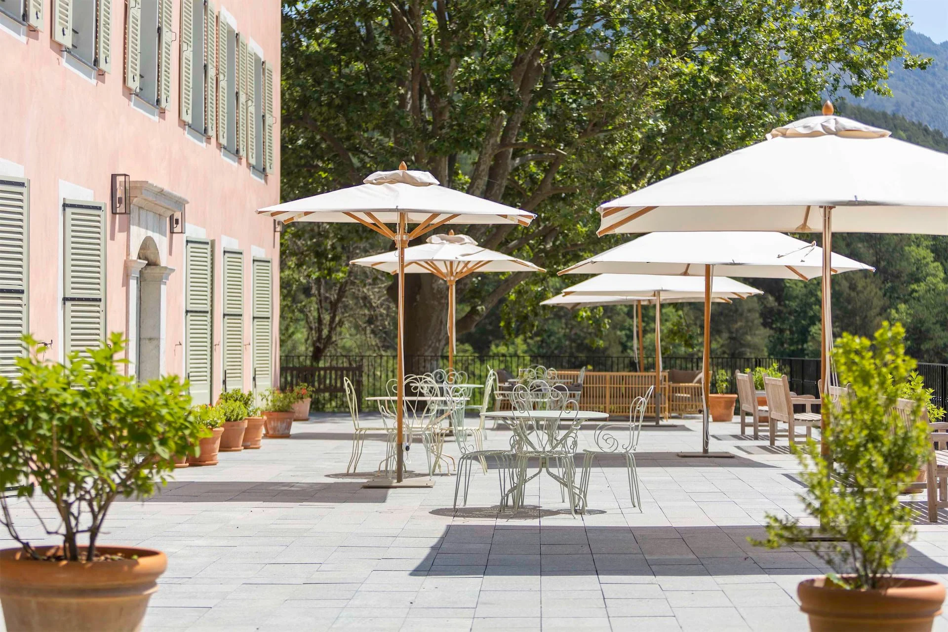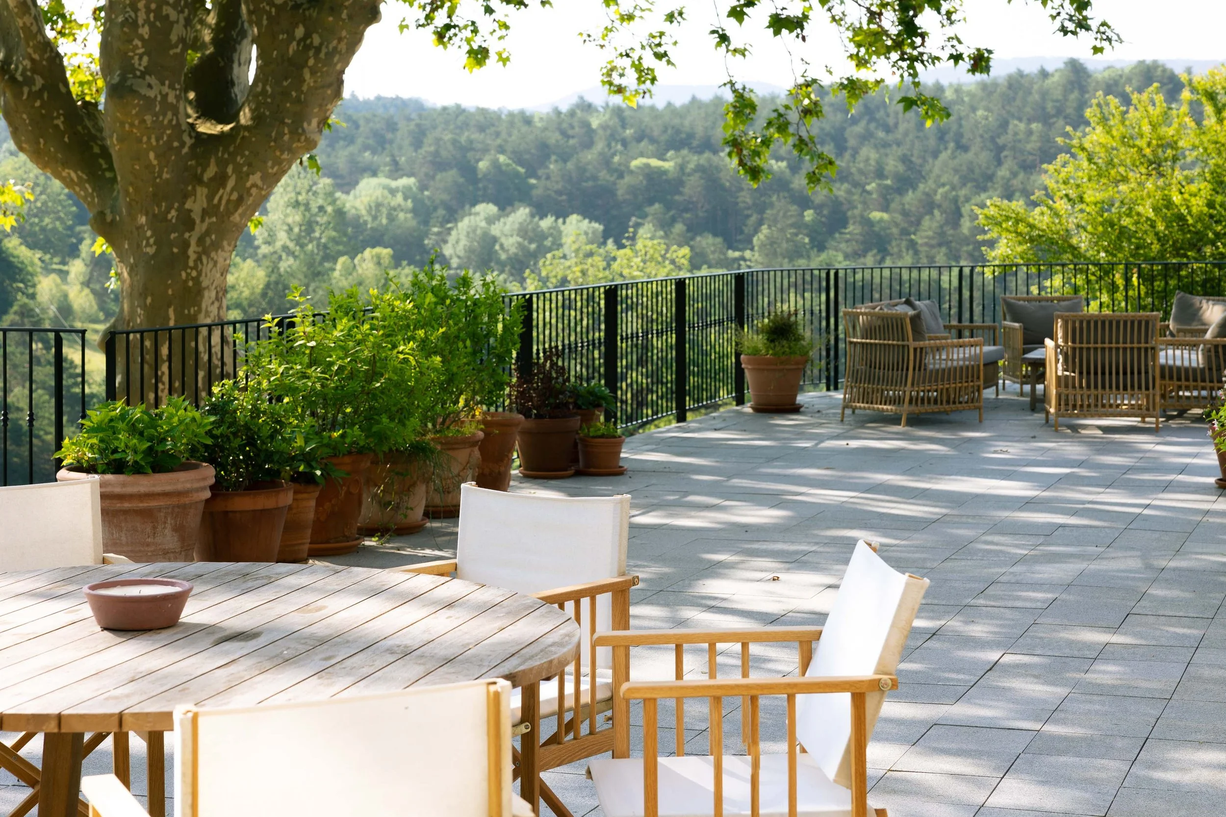 La salle de réception, les terrasses et les allées de platanes majestueux sont autant de lieux pour accueillir vos convives. Le séjour, au style feutré, à la fois ancien et contemporain, offre une vue plongeante sur les montagnes. Et les différents coins-salons vous tendent leurs meilleurs fauteuils pour vous détendre un instant.